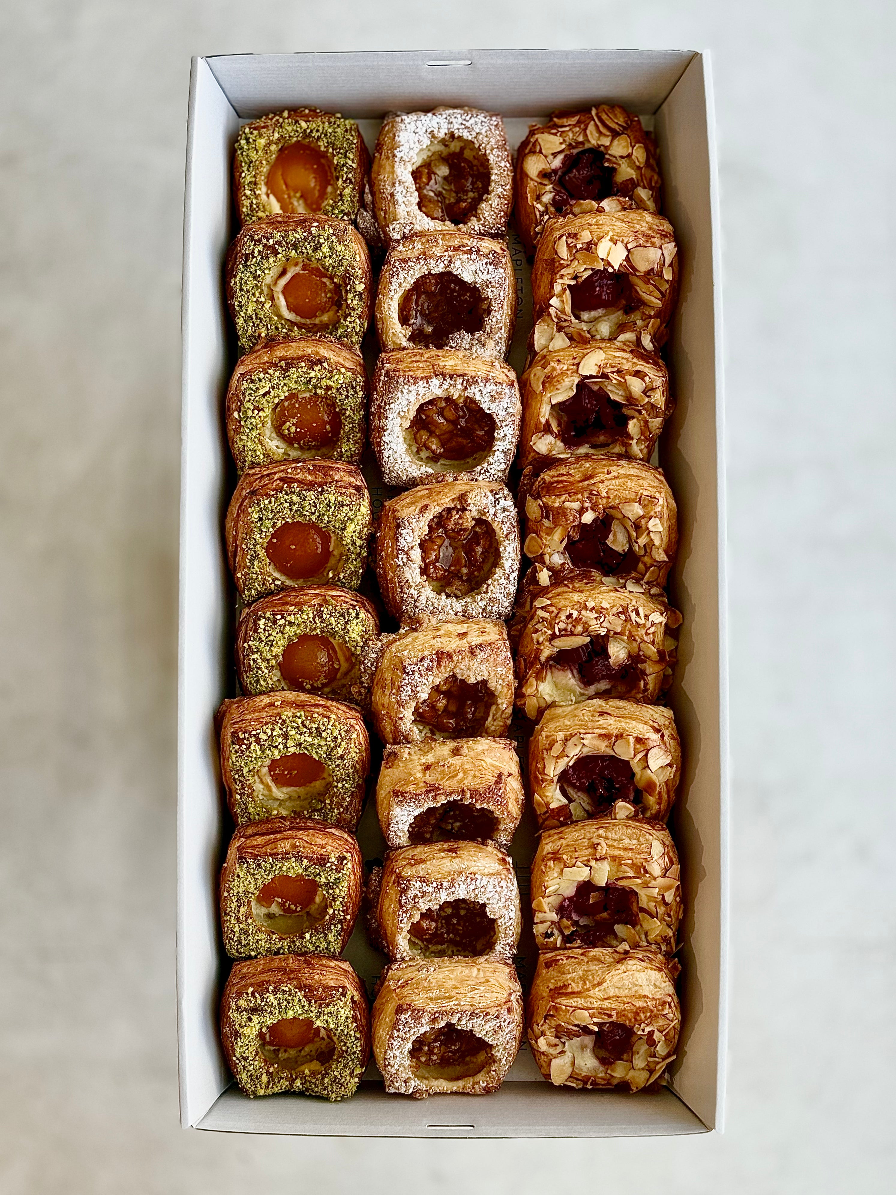 Box contains an assortment of 24 Danish Pastries.